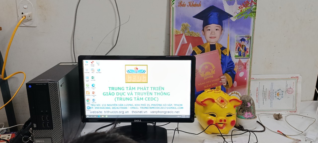 Kinh phí tặng bộ máy tính để bàn từ Qũy Khuyến học nhà giáo ưu tú Trần Chút thuộc Trung tâm CEDC.